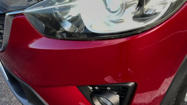 ②左フロントバンパーの黒樹脂部分にキズがあります。