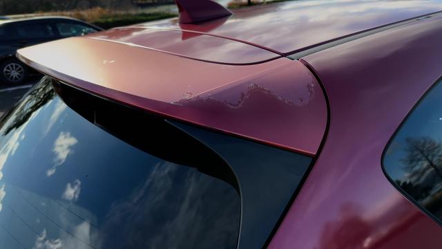 ③ルーフスポイラーの塗装がはがれています。